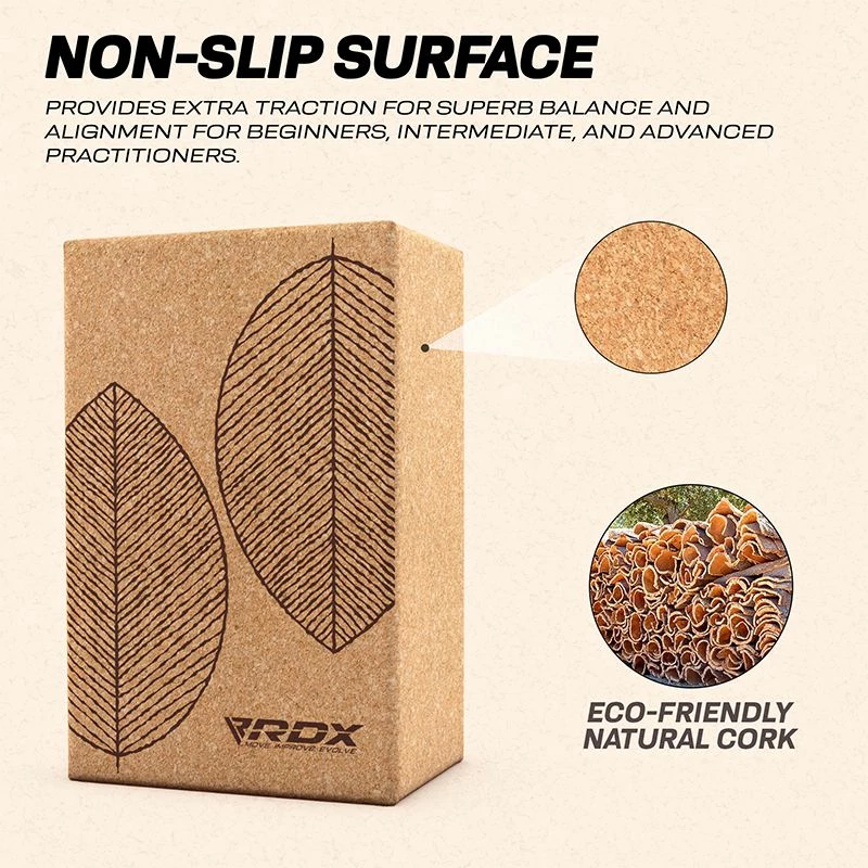 Achieve controlled body movements and increase your flexibility as well as balance with the RDX yoga cork block. Ideal fitness gear to help you hold passive poses for a longer duration without excessive exertion or putting strain on your muscles. Sturdy and yet soft yoga brick increases the comfort of restorative poses. This durable and natural cork block delivers strong support for your back, hips and heels during advanced yoga poses. Resilient yoga brick retains its original shape after strenuous yoga and Pilates workouts. The non-slip texture of yoga block ensures strong hand grip and enhanced traction for increased stability, balance and proper alignment in your poses. Rounded edges of the yoga cushion allow the user to easily grab the block while preventing pressure points that pose the risk of injury. Must-have yoga equipment for home gym and ideal fitness gear for outdoors yoga practice and Pilates. The balance cushion features standard dimensions (22.5*14.5*10.2cm) and is suitable for yogis with different body types and skill level.