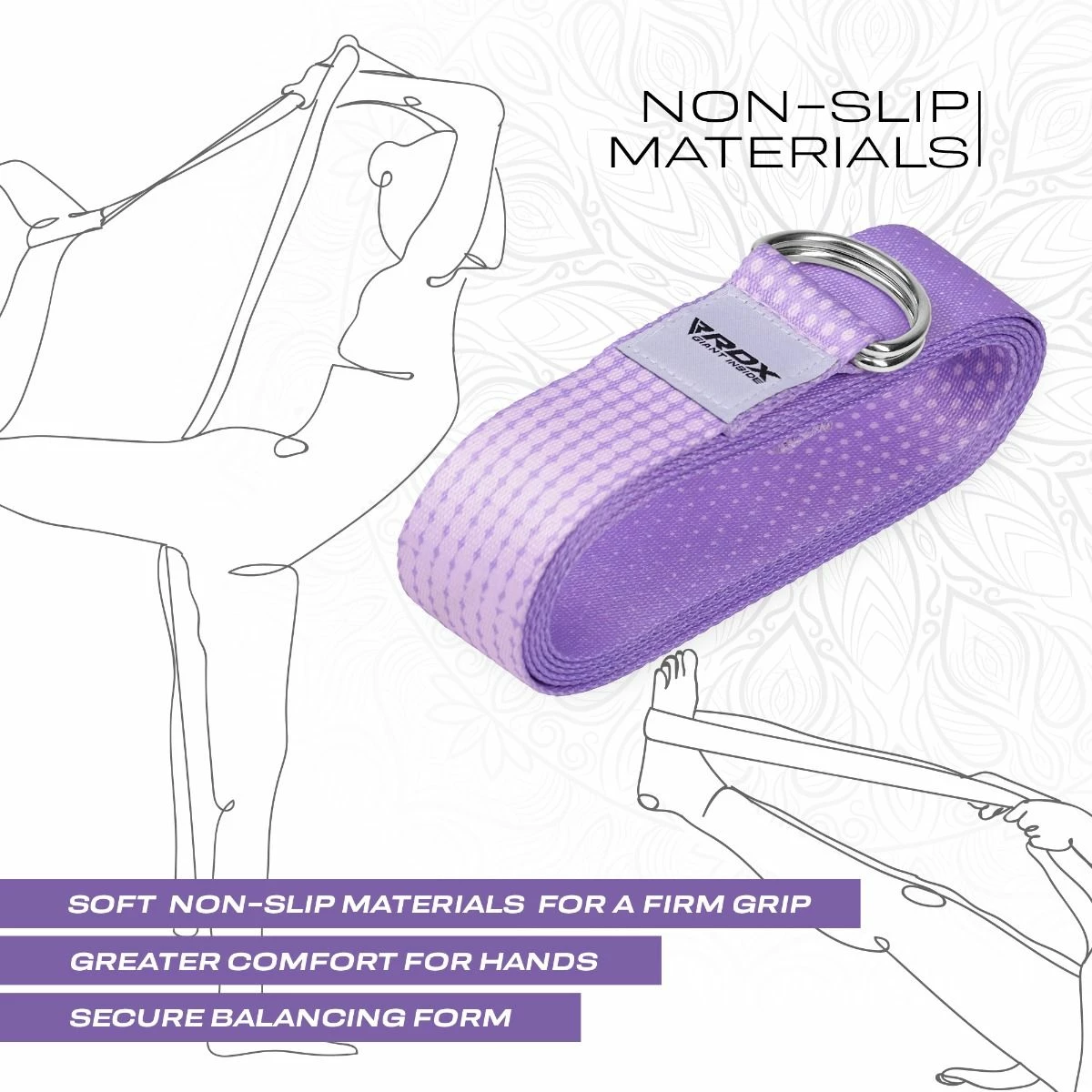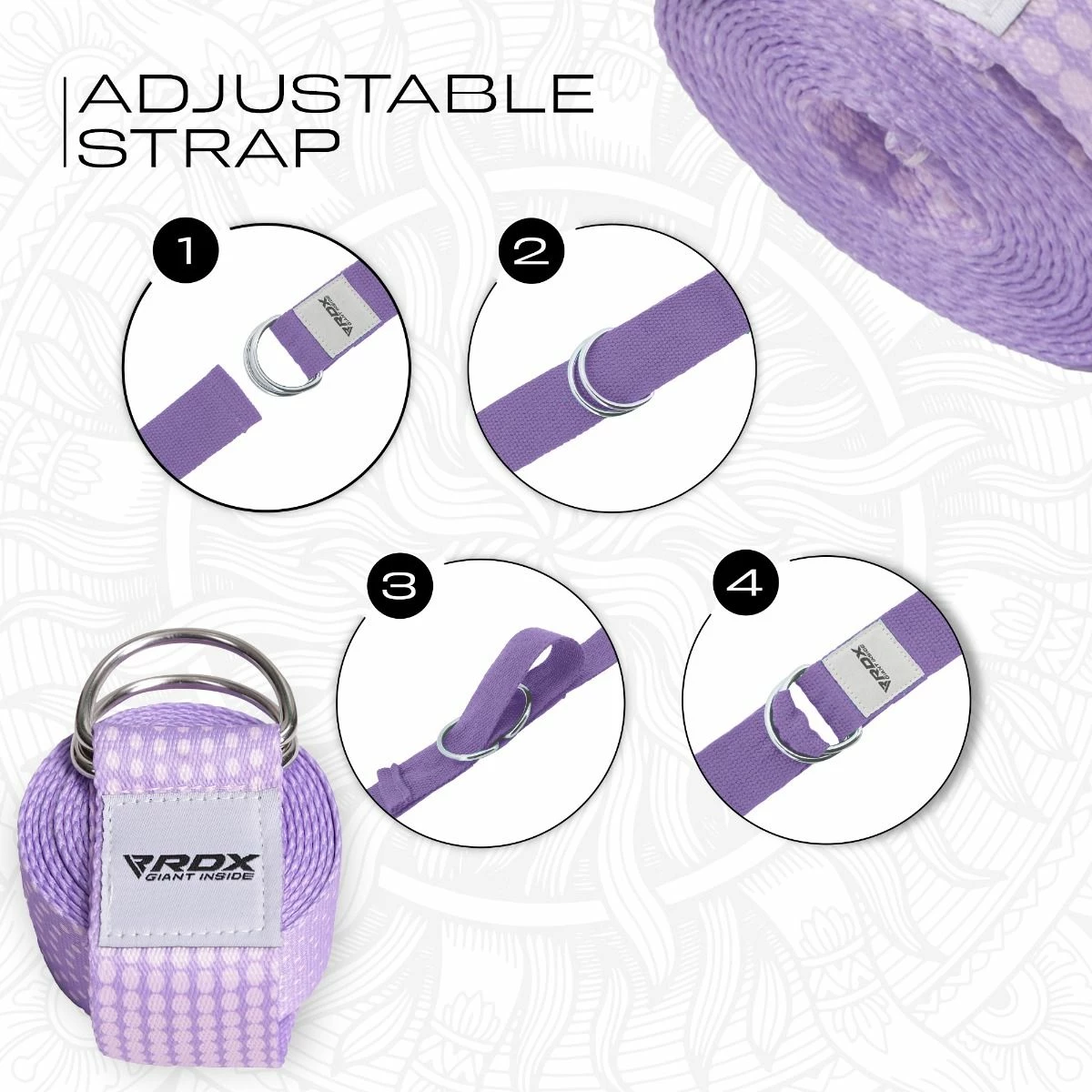 Bridge the gap between your current fitness workout and yoga goals with RDX’s eco-friendly Yoga Straps. Deepen your yoga practice and maximize your performance by challenging flexibility, strength and endurance with this versatile yoga accessory. Made from thick and sturdy premium poly-cotton that is sustainably sourced and holds firm to give you confidence for extending reach and improving mobility in more challenging poses. Our stretching strap is easy to use and simple enough to tie up for your use, allowing you to grab limbs that would be otherwise challenging. Adjustable 8ft long loop strap conforms to perfect alignment of shoulders and back, or stretch out muscles of legs and arms for unlimited yoga poses. Ideally endorsed with 3.8cm width and 0.13cm thickness, our yoga strap is perfect for physical therapy and rehabilitation, yoga exercises at home, Pilates or athletic warm-ups at the gym. Made with soft materials with adjustable double D rings which are rust-proof and unbreakable. A must-have in your yoga kit for studio practice or working out at your home gym. Our easily machine washable yoga stretch strap offers convenience of use and non-slip grip for sweaty hands during intense workouts. Capable of withstanding wear-and-tear from daily, vigorous routines. Comes with a carry bag and exercise manual so you won’t miss any workout day. Pick your favourite design to showcase your unique personality.