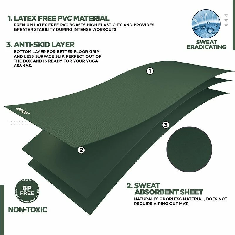- FIRM-GRIP & SWEAT ABSORBENT – Made with premium PVC that offers high elasticity, greater stability and prevents the mat from stretching during intense workouts. The non-slip texture provides firm floor grip without slipping or sliding during routines. Open-cell technology provides effective sweat absorption making the surface easy to wipe & clean, preventing buildup of germs & bad odor.