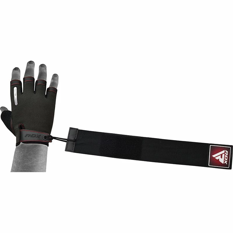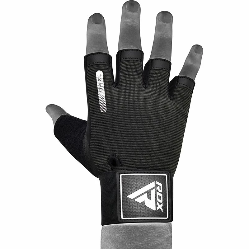RDX T2 half finger weightlifting glove with added wrist strap for enhanced support and protection. Made of the finest stretch material that perfectly conforms to your hand shape. Silicon grip with G-foam padding ensures absolute traction and palm protection from friction that cause blisters without sacrificing grip when it comes to weightlifting, deadlifting, or powerlifting. Thumb base is made of microfiber with perforations for air flow to prevent sweating. Comfortable yet flexible spandex in the inner fingers hugs the hand to fit its form perfectly.